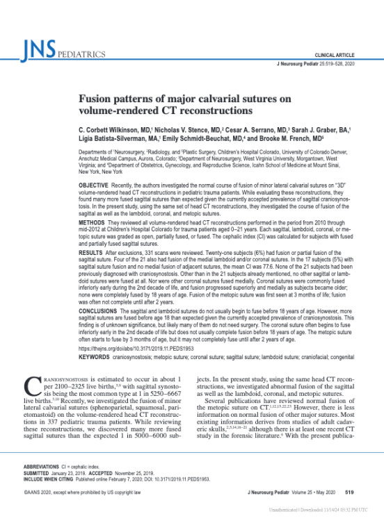 Examining the need for routine intensive care admission after surgical repair of nonsyndromic craniosynostosis: a preliminary analysis