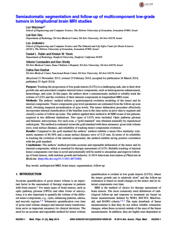 Ben ShoftyLior WeizmanLeo JoskowiczShlomi ConstantiniAnat Kesler + 6 more Dafna Ben BashatMichal YalonRina DvirSigal FreedmanJonathan RothLiat Ben Sira