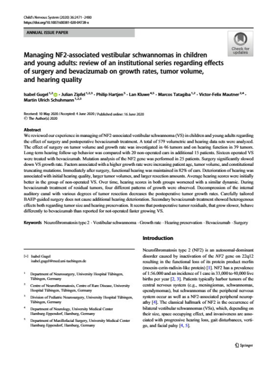 Additional information: Child's Nerves System Yearbook on on Phacomatoses 2020 Editors Shlomi Constantini Martin Schuhmann