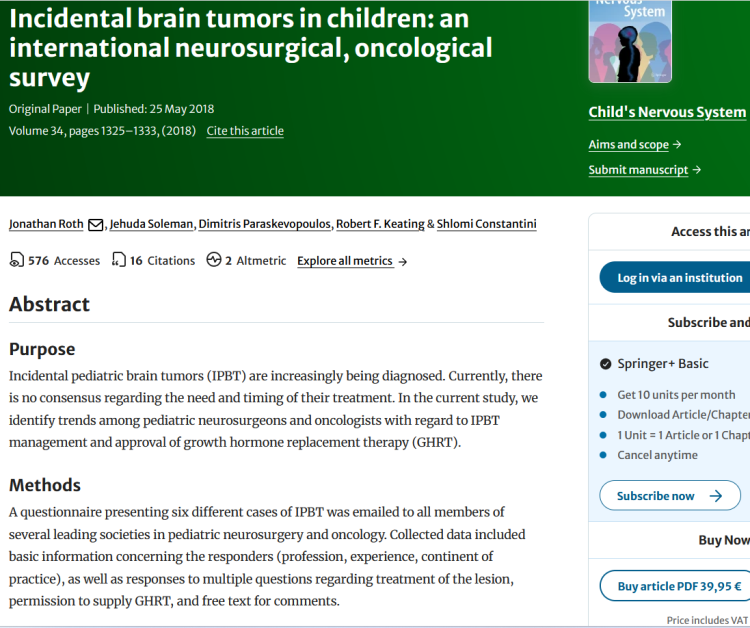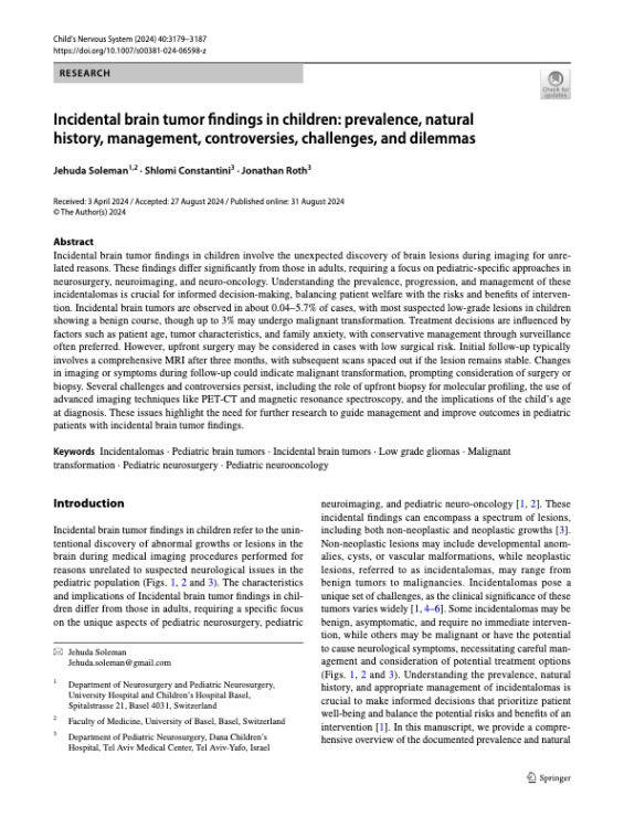 Pediatric Incidental Brain Tumors: a Growing Treatment Dilemma