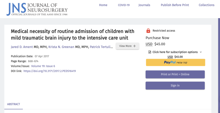 Source: Journal of Neurosurgery: Pediatrics PED, 21(2), 164-170.