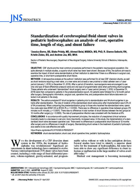 Source: Journal of Neurosurgery: Pediatrics PED, 8(6), 593-599.