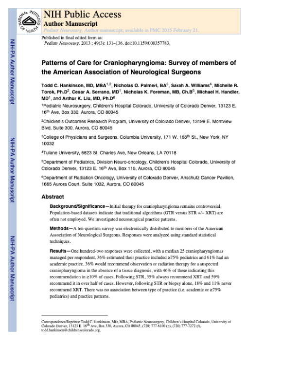 Source: Journal of Neurosurgery: Pediatrics PED, 19(2), 208-216.